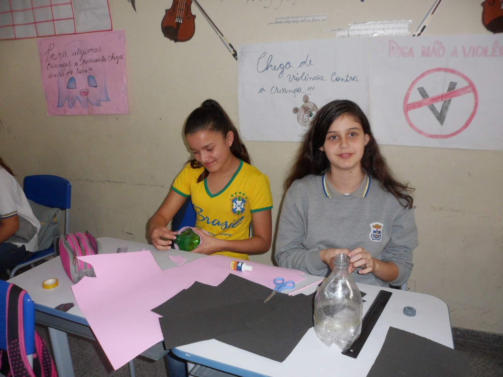 Os alunos do 6º ano aprenderam a criar diversos brinquedos com material reciclável.